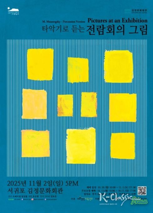 K-Classic News 기자 | 서귀포시는 2024년 10월 공모를 통해 11월에 선정된 2025년 공연예술 지역 유통지원사업의 일환으로, 11월 2일 오후 5시 김정문화회관에서 '타악기로 듣는 전람회의 그림' 타악기 앙상블 공연을 선보인다.