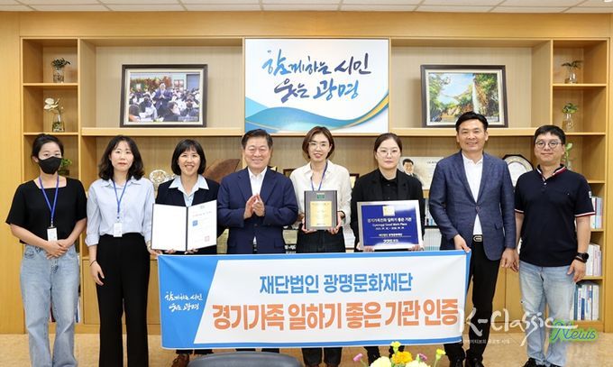 K-Classic News 기자 | (재)광명문화재단은 가족친화적인 조직문화 조성과 복지 제도 운영의 우수성을 인정받아, 경기도로부터 ‘2025년 가족친화 일하기 좋은 기업’ 인증을 받았다.