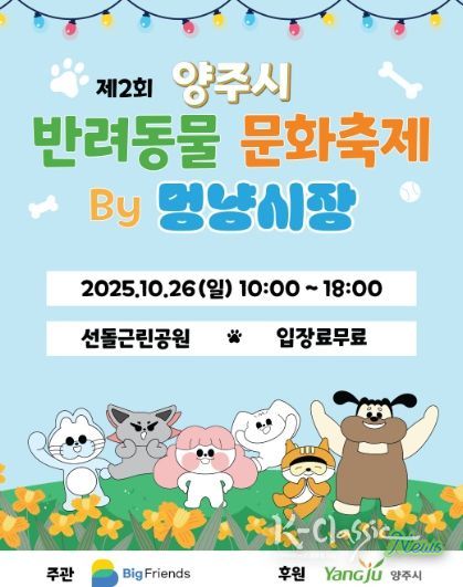 K-Classic News 기자 | ㈜빅프렌즈가 주관하는 ‘2025년 양주시 반려동물 문화축제’가 오는 26일 옥정동 선돌근린공원에서 열린다.