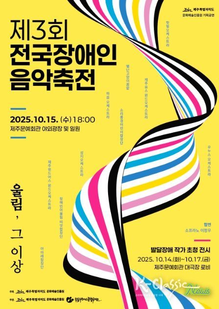 K-Classic News 기자 | 제주특별자치도 문화예술진흥원은 오는 15일 오후 6시 문예회관 광장에서 ‘제3회 전국장애인 음악 축전’을 개최한다.