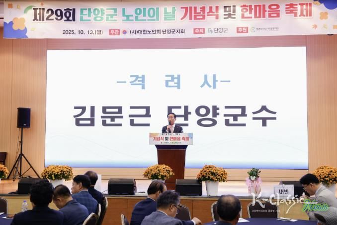 K-Classic News 기자 | 충북 단양군은 지난 13일 소노문 단양 그랜드볼룸홀에서 열린 ‘제29회 노인의 날 기념식 및 한마음 축제’를 성황리에 개최했다고 밝혔다.
