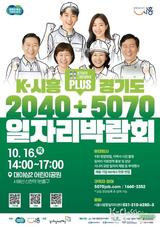K-Classic News 기자 | 시흥시는 경기도 및 경기도일자리재단과 함께 ‘2025년 K-시흥 2040 플러스 경기도 5070 일자리박람회’를 오는 10월 16일 오후 2시부터 5시까지 대야삼2어린이공원(서해선 신천역 1번 출구 앞)에서 개최한다.