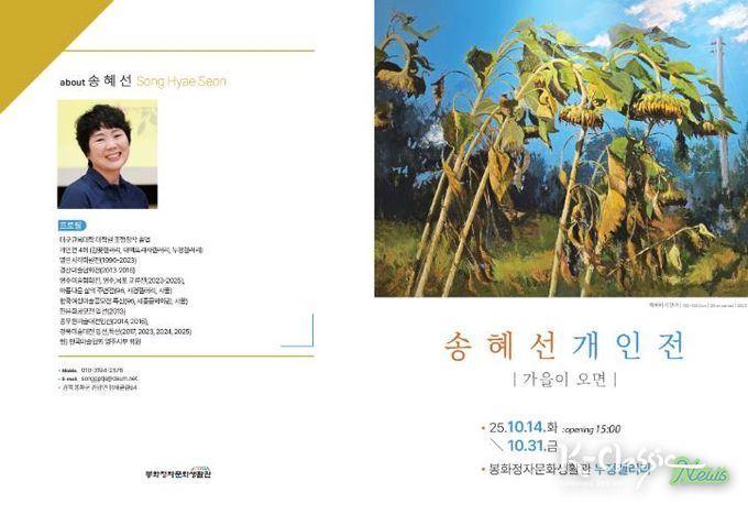 K-Classic News 기자 | 봉화정자문화생화관은 10월 14일부터 31일까지 누정갤러리에서 송혜선 작가의 개인전 '가을이 오면'을 개최한다.