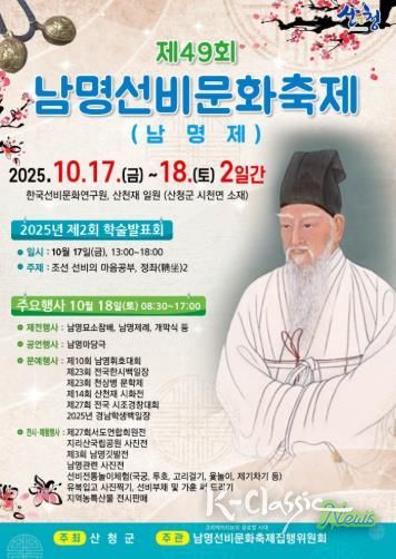 K-Classic News 기자 | 산청군은 오는 17~18일 시천면에 위치한 한국선비문화연구원에서 ‘제49회 남명선비문화축제’를 개최한다고 14일 밝혔다.