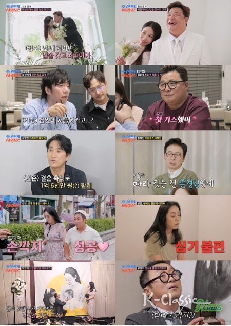 K-Classic News 기자 | TV CHOSUN 극사실주의 다큐 예능 ‘조선의 사랑꾼’에서 '원진서' 윤정수가 ‘찐친즈’ 배기성X임형준과 청첩장 모임을 가졌다. 또, 김병만이 결혼 전 63빌딩에서 아내에게 감동의 프러포즈를 하는 장면이 포착됐다.