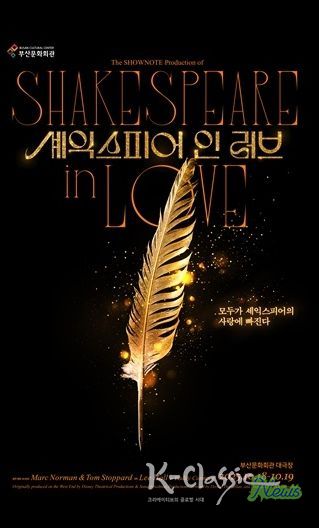 K-Classic News 기자 | (재)부산문화회관(대표이사 차재근)은 오는 10월 18일(토)부터 19일(일)까지, 연극 '셰익스피어 인 러브'를 총 4회에 걸쳐 부산문화회관 대극장 무대에 올린다.