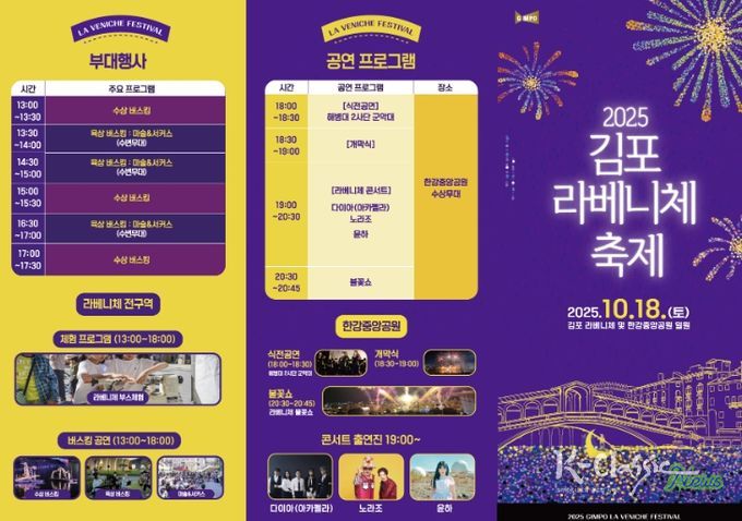 K-Classic News 기자 | 대한민국의 베니스 ‘라베니체’를 100% 즐길 수 있는 ‘2025 김포 라베니체 축제’가 오는 18일 한강중앙공원과 라베니체 일원에서 열린다. K-드라마 성지이자 대한민국 대표 야간명소로 이름난 라베니체에서 수상버스킹과 불꽃쇼를 동시에 즐길 수 있는 1년에 단 하루 열리는 축제다.