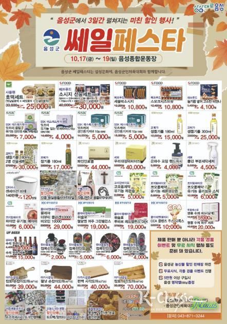 음성군 쎄일페스타는 작년 9월에 처음 열렸으며, 관내 기업 제품과 음성 명작 농산물을 저렴하게 구매할 수 있는 행사이다.