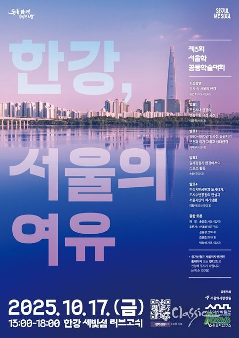 K-Classic News 기자 | 서울역사편찬원은 10월 17일 오후 1시, 한강 세빛섬에서 제3회 서울학 공동학술대회 '한강, 서울의 여유'를 개최한다. 이번 학술대회는 조선시대부터 현대에 이르기까지 한강과 함께 변화해 온 서울사람의 일상과 여가 그리고 도시문화의 흐름을 폭넓게 조명한다.