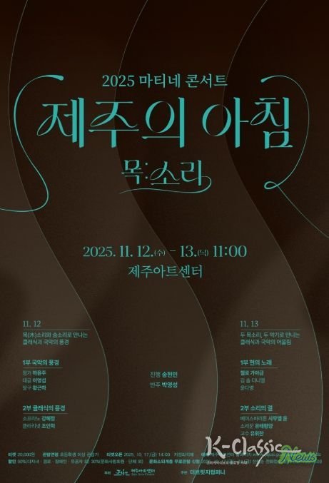 K-Classic News 기자 | 제주아트센터는 11월 12일과 13일 이틀간 오전 11시 마티네 콘서트 ‘제주의 아침’을 개최한다.