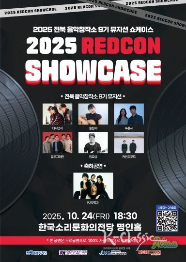 K-Classic News 기자 | (재)전북특별자치도 콘텐츠융합진흥원은 ‘2025 전북 레드콘 음악창작소 9기 뮤지션 쇼케이스’를 오는 24일 오후 6시 30분, 한국소리문화의전당 명인홀에서 개최한다.