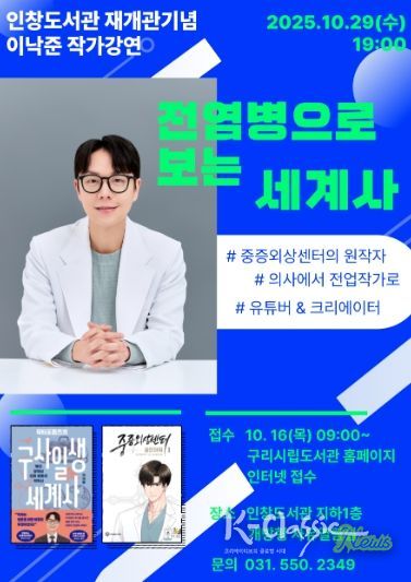 특히 작가초청 강연에는 『중증외상센터 : 골든아워』의 원작자인 이낙준 작가가 참여한다. 행사는 10월 29일(화) 저녁 7시, 새롭게 단장한 지하 1층 북카페형 개방 공간에서 진행된다.