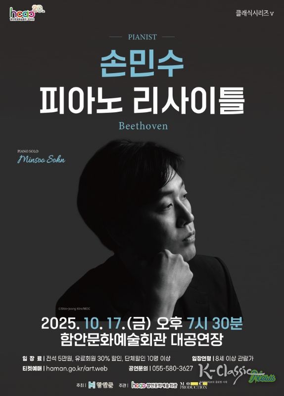 K-Classic News 기자 | 함안군은 깊은 음악성을 지닌 피아니스트 손민수가 오는 10월 17일 함안문화예술회관 대공연장에서 열린다고 밝혔다.