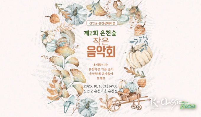 K-Classic News 기자 | 진안군은 오는 18일 오후 2시~4시까지 은천생태마을 숲에서 ‘두 번째 은천숲 작은 음악회’가 열린다고 밝혔다.