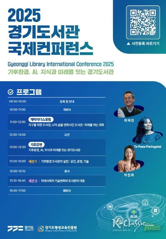 K-Classic News 기자 | 경기도와 경기도평생교육진흥원은 오는 23일 수원컨벤션센터 컨벤션홀3에서 ‘기후환경, AI, 지식과 미래를 잇는 도서관’을 주제로 ‘2025 경기도서관 국제콘퍼런스’를 개최한다.