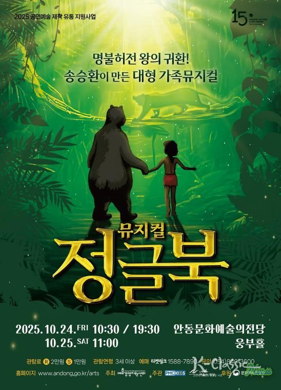 K-Classic News 기자 | 안동문화예술의전당은 예술경영지원센터가 주최하는 2025 공연예술 지역 유통사업의 일환으로 ‘가족뮤지컬 정글북’을 오는 10월 24일 10시 30분과 19시 30분, 25일 11시 3회 웅부홀에 올린다.