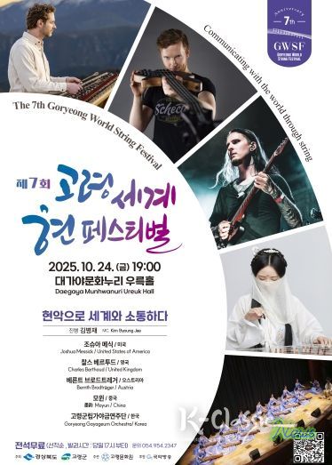 K-Classic News 기자 | 깊어가는 가을, 고령이 세계 각국의 현악 선율로 물드는 『제7회 고령 세계 현 페스티벌』이 오는 10월 24일, 대가야문화누리 우륵홀에서 열린다. 경상북도와 고령군이 주최하고, 고령문화원이 주관하는 이번 행사는 “현악으로 세계와 소통하다”를 주제로, 각국의 현악 연주자들이 한 무대에서 음악으로 교감하며 새로운 예술적 경험을 선사할 예정이다.