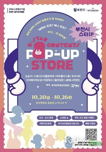 K-Classic News 기자 | 부천시는 10월 20일부터 26일까지 현대백화점 중동점 U-PLEX 1층에서 지역 우수 콘텐츠 기업 8개 사가 참여하는 팝업스토어 ‘8 CONTENTS, ONE STAGE in BUCHEON’을 운영한다.