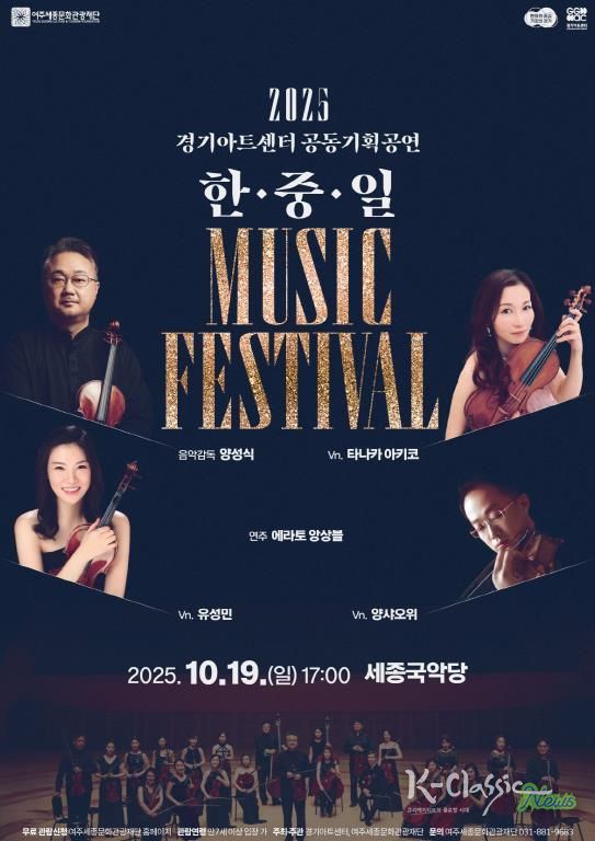 K-Classic News 기자 | 여주세종문화관광재단이 오는 10월 19일, 경기아트센터와 공동기획으로 ‘한·중·일 뮤직 페스티벌’을 세종국악당에서 선보인다.