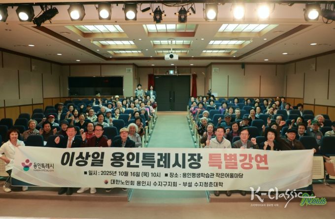 K-Classic News 기자 | 이상일 용인특레시장은 16일 오전 수지구 큰어울마당에서 대한노인회 용인시 수지구지회가 운영하는 수지청춘노인대학 어르신 100여 명을 대상으로 미술 특강을 했다.