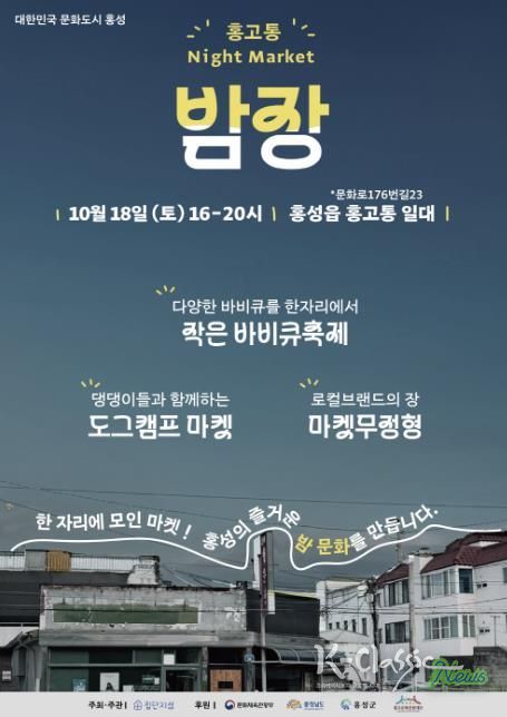 한편 이번 밤장은 대한민국 문화도시 홍성 조성사업 ‘홍자람’의 특화프로그램이자 홍주로컬콘텐츠 조성을 위해 마련된 행사로서, 청년창업가를 지원·육성하는 ‘집단지성’이 주최·주관하고 문화체육관광부, 충청남도, 홍성군, 홍주문화관광재단이 후원한다.