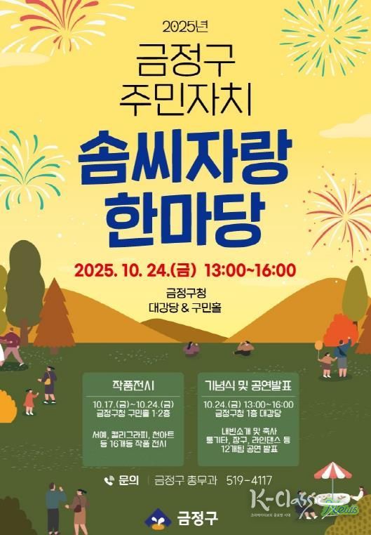 K-Classic News 기자 | 부산시 금정구는 10월 17일부터 10월 26일까지 금정구청 대강당과 구민홀에서 ‘2025년 금정구 주민자치 솜씨자랑 한마당’을 개최한다고 17일 밝혔다.