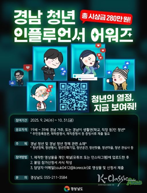K-Classic News 기자 | 경남도는 ‘2025 경남 청년 인플루언서 어워즈’를 개최한다고 17일 밝혔다.