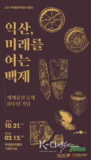 K-Classic News 기자 | 익산시가 '백제역사유적지구 세계유산 등재 10주년'과 '이리시·익산군 통합 30주년'을 기념해 백제의 찬란한 역사를 조명하는 특별전을 선보인다.