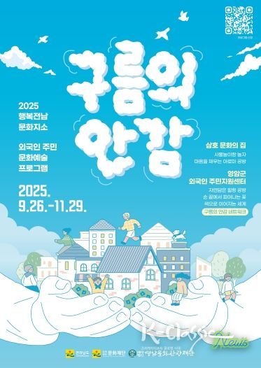 K-Classic News 기자 | (재)영암문화관광재단은 문화예술을 매개로 외국인 주민과 지역 주민 간의 소통과 이해를 증진하기 위한 “구름의 안감”프로젝트를 오는 17일 밝혔다. 이 프로젝트는 구름 안감 속에 서로 다른 숨결들이 조화를 이루어 한 공간 속에서 새로운 꿈을 만들어 가길 바라는 관점에서 기획됐다.