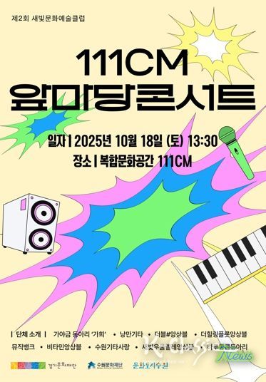 수원문화재단 관계자는 “제2회 새빛문화예술클럽 ‘111CM 앞마당 콘서트’를 통해 수원만의 다채로운 문화예술 환경을 조성하고, 참여 구성원들이 하나가 되어 문화도시 수원을 만들어가는 뜻깊은 자리가 되도록 노력하겠다”고 밝혔다.
