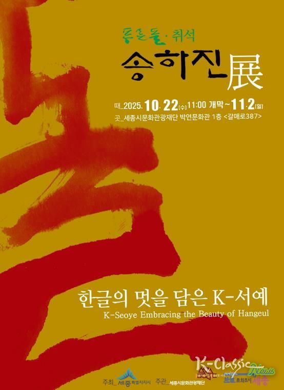 K-Classic News 기자 | 세종특별자치시가 오는 22일부터 내달 2일까지 박연문화관 전시실에서 서예와 한글을 결합한 ‘취석(翠石) 송하진전’을 개최한다.