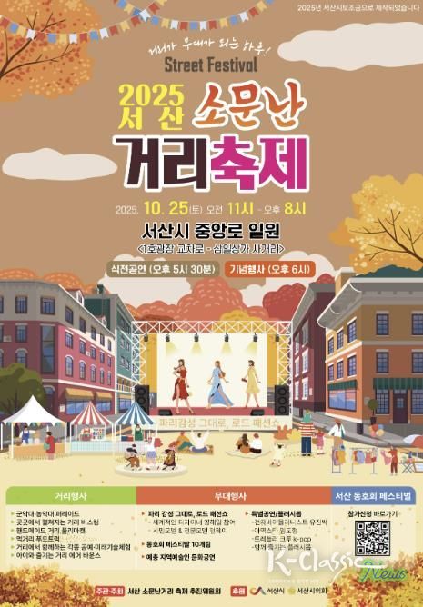 K-Classic News 기자 | 충남 서산시는 오는 25일 오전 11시부터 오후 8시까지 ‘2025 서산 소문난 거리 축제’를 개최한다고 밝혔다.