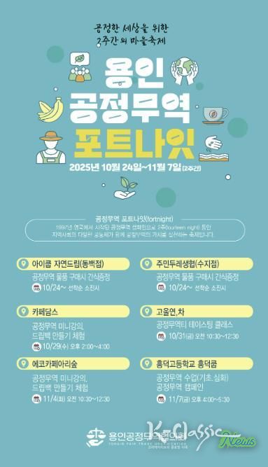 K-Classic News 기자 | 용인특례시와 용인공정무역협의회는 10월 24일부터 11월 7일까지 2주간 용인시 공정무역 포트나잇 축제를 개최한다.