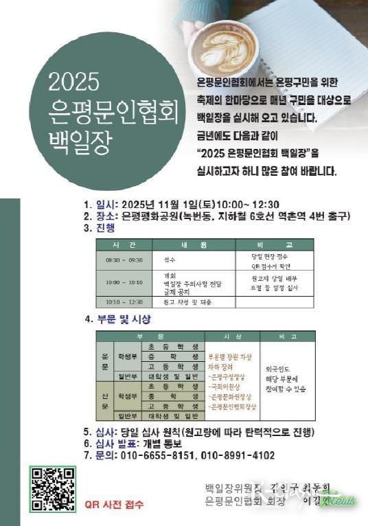 참여 대상은 관내 학교에 재학 중인 초중고 학생이나 은평구민이면 누구나 참여할 수 있다. 부문은 ▲초등학생 ▲중학생 ▲고등학생 ▲대학생·일반으로 나뉘어 운영된다. 글제는 행사 당일 현장에서 발표되며, 참가자들은 운문 또는 산문 중 한 분야를 선택해 한 작품만 제출해야 한다.