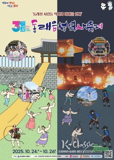 K-Classic News 기자 | 부산 동래구는 오는 10월 24일부터 26일까지 3일간 ‘동래성 사람들, 역사와 미래를 잇다’라는 새로운 슬로건으로 ‘제31회 동래읍성역사축제’를 개최한다고 밝혔다. 올해 축제는 동래성 항전 이야기에 4차 산업 기술을 접목해 다양한 체험과 공연으로 가득 채운 새로운 형태의 축제로 진행된다.