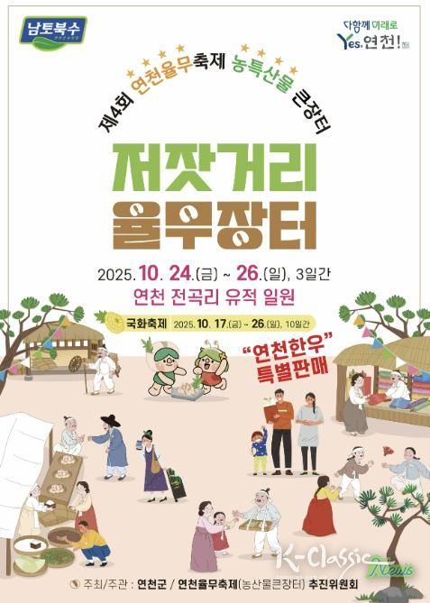 K-Classic News 기자 | 연천군은 지역 대표 특산물인 율무를 주제로 한 제4회 연천율무축제(농특산물 큰장터)’를 오는 10월 24일부터 26일까지 3일간 연천전곡리유적(연천군 전곡읍 양연로 1510) 일원에서 개최한다고 밝혔다.