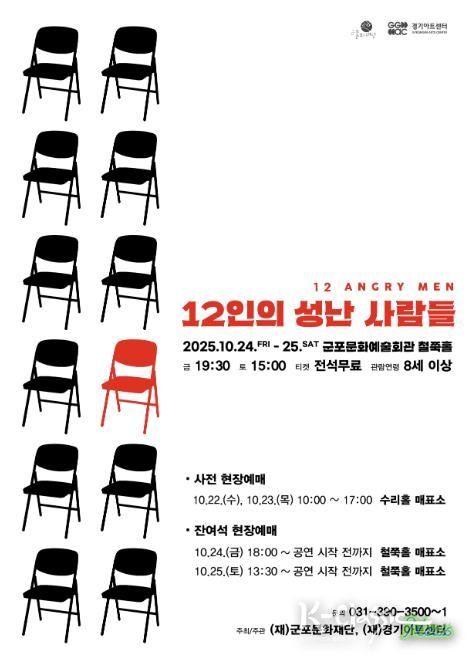 K-Classic News 기자 | (재)군포문화재단은 오는 10월 24일 ~ 10월 25일 군포문화예술회관 철쭉홀에서 기획공연“12인의 성난 사람들”을 선보인다.