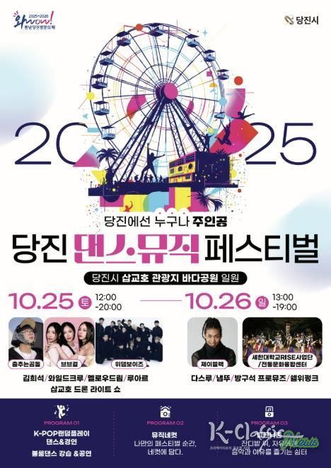 K-Classic News 기자 | 당진시가 오는 25일과 26일 이틀간 삽교호 관광지 바다공원 일원에서‘2025년 당진 댄스·뮤직 페스티벌(DDMF)’을 개최하며, '춤과 음악으로 하나 되는 당진, 당진에선 누구나 주인공'이라는 주제로 화려한 가을 축제의 장을 펼친다.
