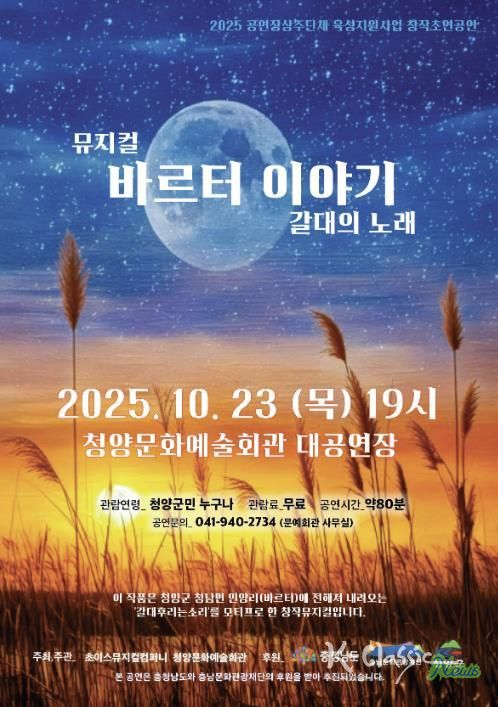 이 공연은 ‘2025 충남공연장 상주단체 육성지원사업’의 일환으로 제작됐으며 청양문화예술회관과 초이스뮤지컬컴퍼니(대표 최인양, 장현아)가 주최·주관하고 충청남도와 충남문화관광재단, 청양군이 후원한다.