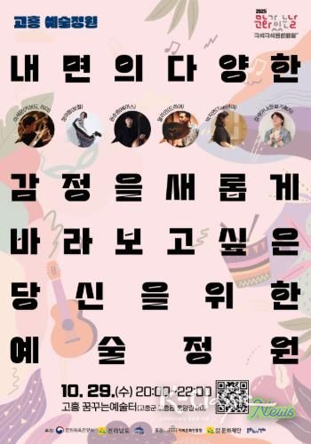 이번 ‘고흥예술정원’은 이세운 밴드와 김새아나 문화기획자가 함께하며, ‘내면의 다양한 감정을 새롭게 바라보고 싶은 당신을 위한 예술정원’을 주제로 감정 키워드를 활용한 재즈 즉흥 연주 워크숍이 진행될 예정이다.