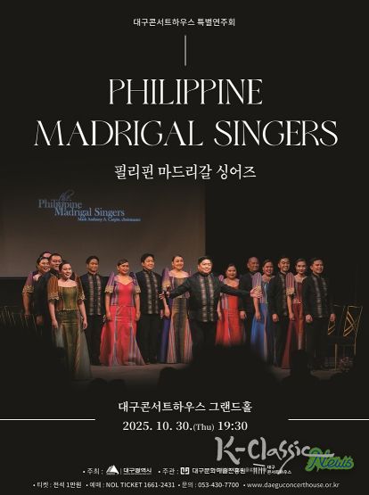 오는 10월 30일 오후 7시 30분, 대구콘서트하우스 그랜드홀에서는 세계 최정상의 아카펠라 합창단 ‘필리핀 마드리갈 싱어즈(Philippine Madrigal Singers)’가 천상의 목소리로 대구를 물들인다. 이번 공연은 대구콘서트하우스가 기획한 합창공연으로 아시아 각국을 순회하는 필리핀 마드리갈 싱어즈의 글로벌 투어 중 가장 주목받는 일정으로 꼽히고 있다.