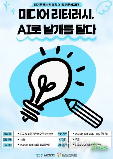 K-Classic News 기자 | (재)김포문화재단과 경기콘텐츠진흥원은 오는 10월 30일과 31일, 양일간 김포미디어아트센터 교육실에서 '미디어리터러시, AI로 날개를 달다' 디지털 리터러시 및 AI 활용 교육을 공동 개최한다고 밝혔다.