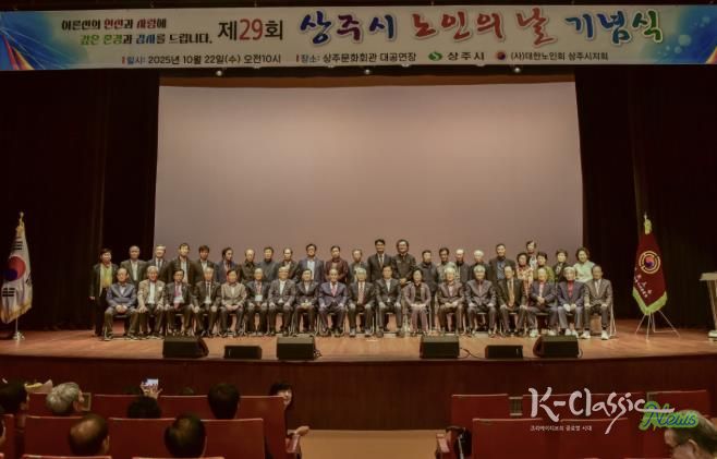 K-Classic News 기자 | 대한노인회 상주시지회는 10월 22일 오전 10시, 상주문화회환 대공연장에서 600여명의 어르신들이 참석한 가운데‘제29회 노인의 날’기념식을 개최했다.
