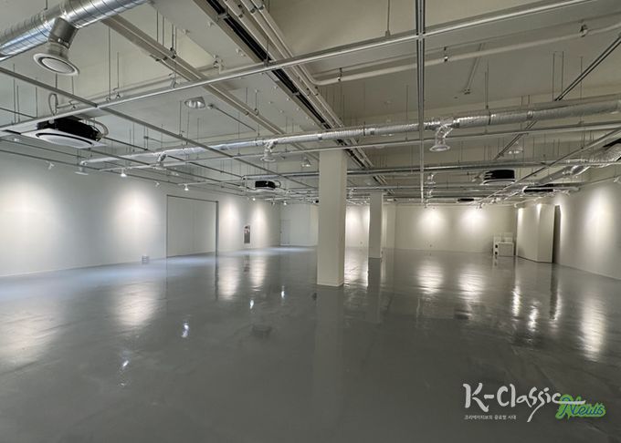 ‘공공갤러리’는 경기창작캠퍼스 교육동 1층에 위치한 전시공간으로, 창작–전시–판매가 유기적으로 이어지는 국내 최초의 공공형 미술 유통 플랫폼이다. 총 391㎡(118평) 규모의 넓은 화이트큐브형 전시실로, 가로 약 2.3m 크기의 이동식 가벽 9개가 설치돼 있어, 전시 성격에 따라 공간을 자유롭게 구성할 수 있다.