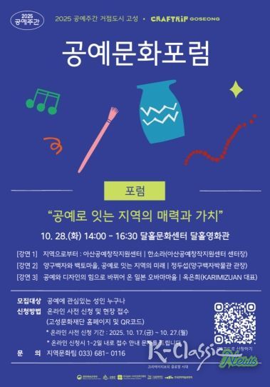 K-Classic News 기자 | (재)고성문화재단은 오는 10월 28일 오후 2시, 달홀문화센터 달홀영화관에서 ‘공예로 잇는 지역의 매력과 가치’ 포럼을 개최한다.