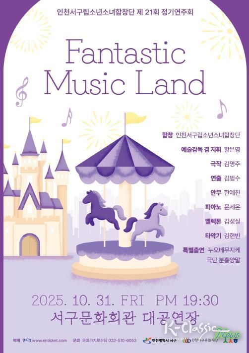 K-Classic News 기자 | 인천서구립소년소녀합창단이 오는 10월 31일 오후 7시 30분, 서구문화회관 대공연장에서 제21회 정기연주회 ‘Fantastic Music Land’를 개최한다.