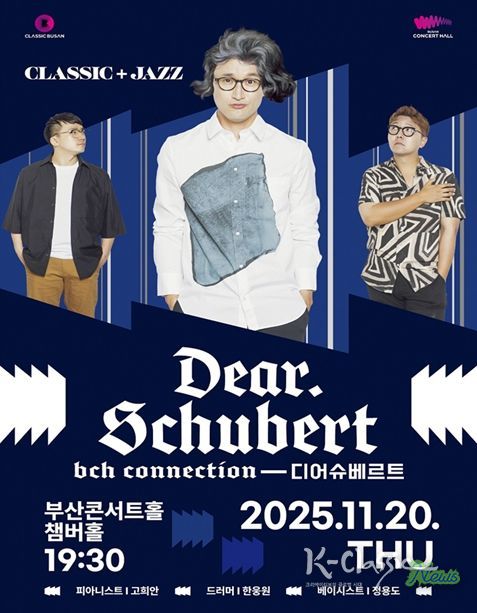 K-Classic News 기자 | 부산시 클래식부산은 오는 11월 20일 저녁 7시 30분 챔버홀에서 ▲피아니스트 고희안 ▲드럼 한웅원 ▲베이스 정용도와 클래식부산 오케스트라 수석들이 주축이 된 '부산콘서트홀 커넥션-디어 슈베르트'의 공연을 개최한다고 밝혔다.