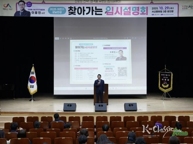 K-Classic News 기자 | 충남 서산시는 지난 29일 서산문화원 3층 공연장에서 개최한 ‘강남인강 찾아가는 입시설명회’가 학생과 학부모들의 높은 관심 속에 성황리에 마무리됐다고 밝혔다.