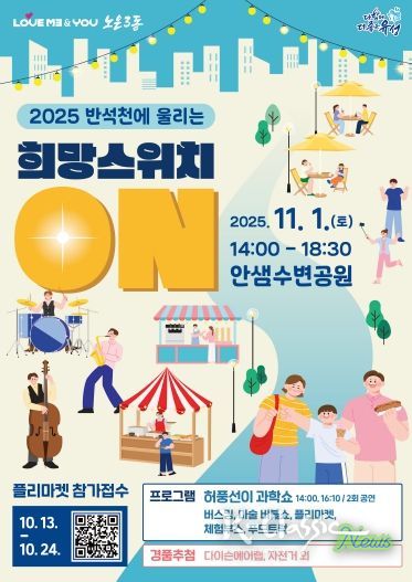 K-Classic News 기자 | 대전 유성구는 11월 1일 지족동 안샘수변공원에서 ‘2025 노은3동 반석천에 울리는 희망스위치 ON’ 행사를 개최한다.
