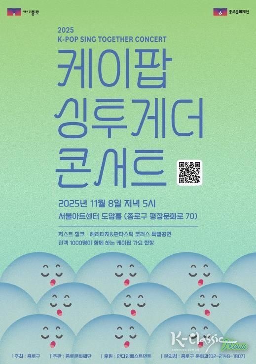 K-Classic News 기자 | 종로구는 11월 8일 17시 서울아트센터 도암홀(평창문화로 70)에서 ‘케이팝 싱투게더 콘서트’를 개최한다.